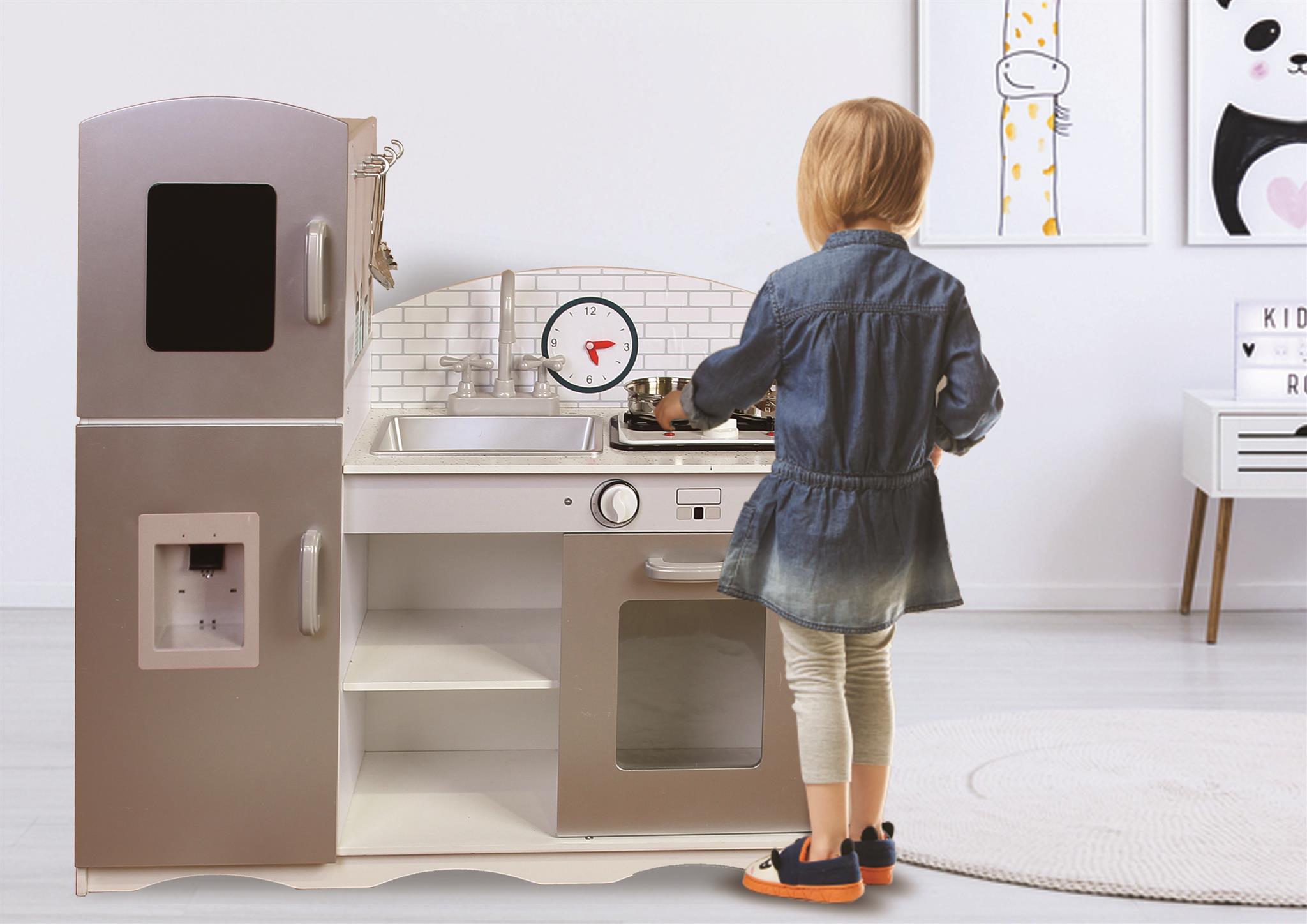 Playtime is amazing! This all-rounder contemporary kid-sized kitchen features real kitchen look and imaginative details sure to impress young chefs!
